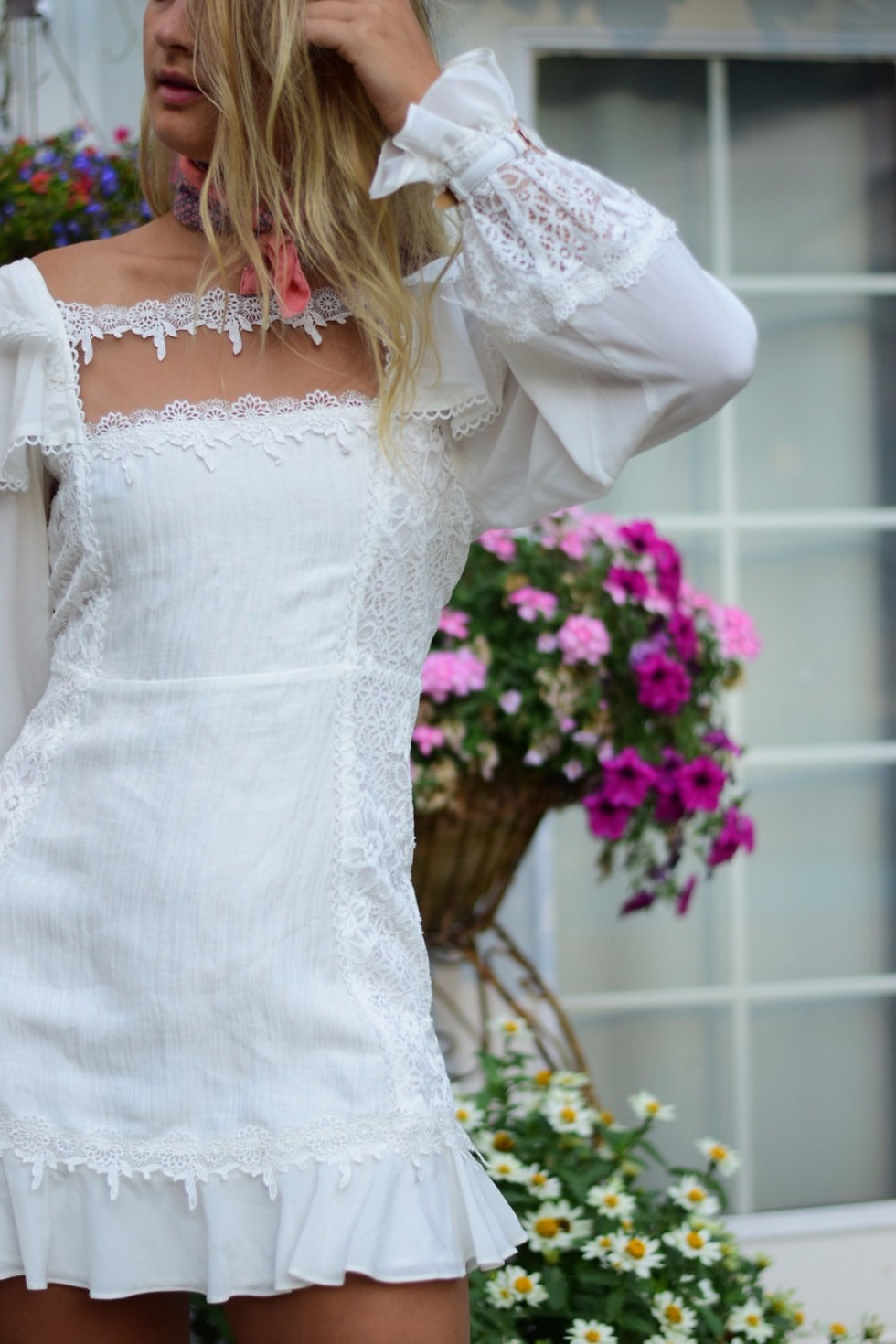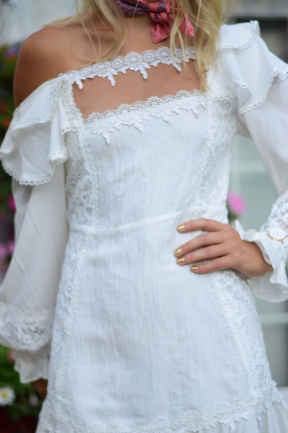 Breaking the rules and wearing white after labor day (hehe). Jk I wore this dress a couple of weeks ago but just decided to share it now. This look is styled around this classic watch from Daniel Wellington. A simple watch is a must-have for any wardrobe because it is a simple and chic accessory you can throw on and immediately look more refined. I really liked this all white version because it is an update on a staple leather band. I wanted to create a look that is different than a normal outfit you'd think to wear with a watch, so I opted for this white long-sleeve boho dress from For Love and Lemons. The look is crisp with the monochrome but it is also very textural with the different fabrics of the dress, the lace, and the leather of the watch. I wore the watch over the sleeve (weird, sorry) so it isn't hidden. To finish, I added a little vintage pink Hermès scarf for some color.